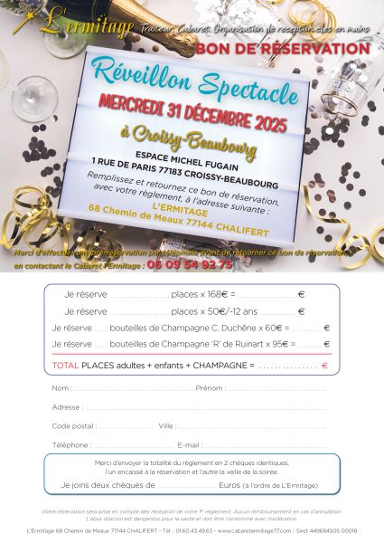 Situé à 2 km de Disneyland Paris en bord de Marne, c´est dans un cadre festif que l´équipe de l'Ermitage vous accueillera pour faire de vos soirées un moment inoubliable.